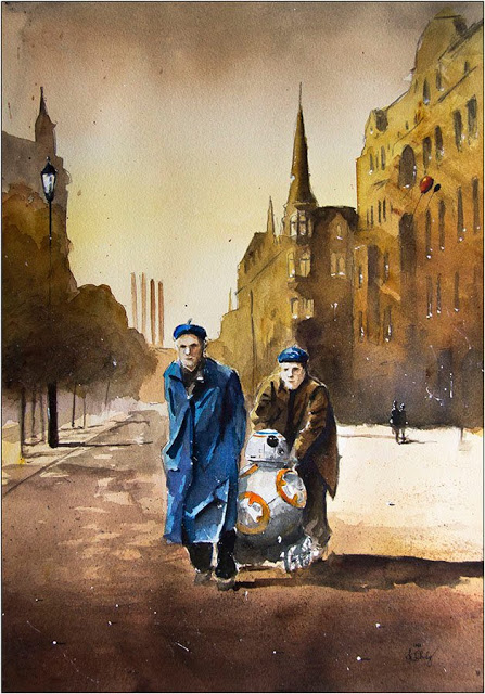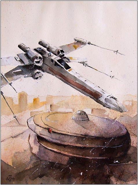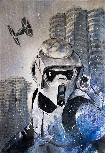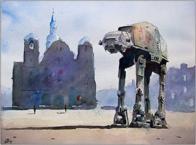 Na szczęście sporo prac uniknęło wciepania do hasioka, a że pan Grzegorz jest także wielkim fanem Gwiezdnej Sagi, otrzymaliśmy takie oto cuda, w których obraz to jedno, ale nie mnie interesujące są same tytuły obrazów: