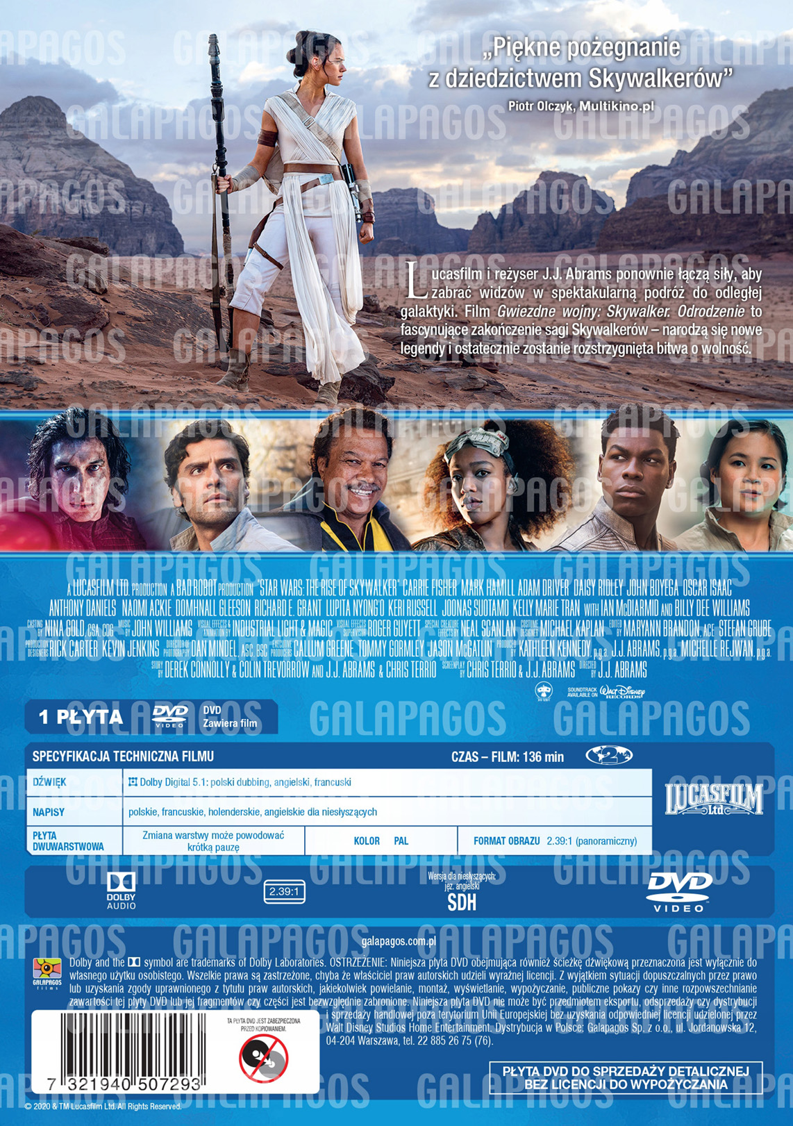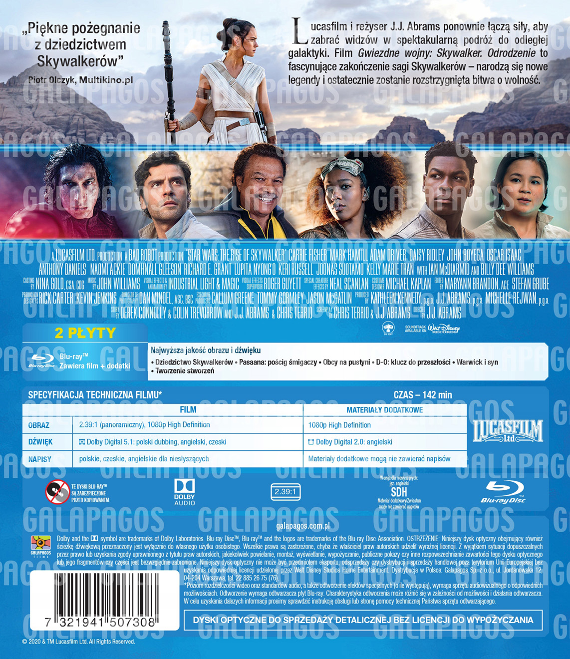 Niestety Galapagos zrezygnowało z wydania Epizodu IX w wersji 3D, więc kolekcjonerskie wydanie oprócz opakowania nie różni się niczym względem klasycznej wersji Blu-ray. Polski dystrybutor nie planuje również wydać wersji filmu w 4K, ani zbiorczej kolekcji sagi Skywalkerów, która za granicą zadebiutuje już za 3 tygodnie. Co więcej, według specyfikacji film nie posiada nawet angielskiej wersji językowej w standardzie DTS-HD Master Audio 7.1, zamiast tego do wyboru są 3 ścieżki językowe w wersji Dolby Digital 5.1.